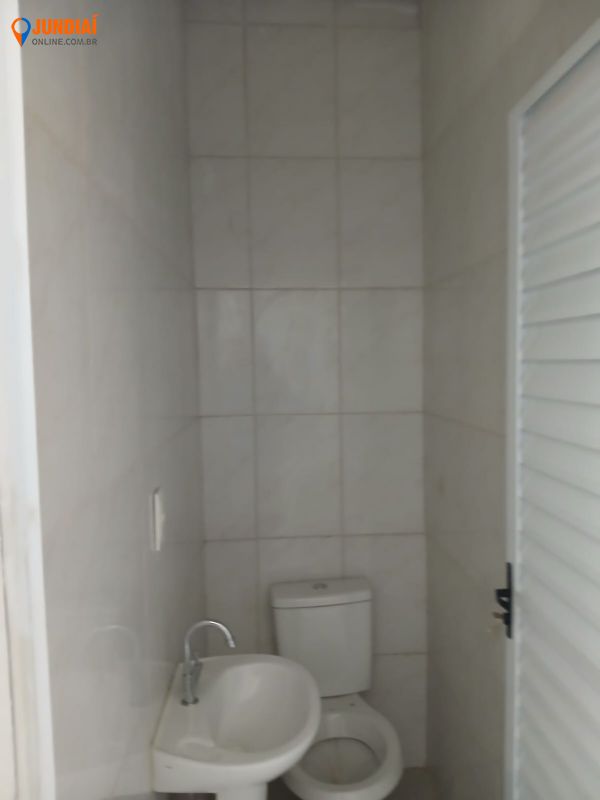 Salão comercial novo no Vianelo medindo 100 m² com 2 banheiros. Seguro incêndio obrigatório. Código A5060