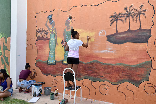 Um domingo (16) de trabalho muito prazeroso para os jovens voluntários que abraçaram a proposta no intuito de recuperar o Complexo Educacional, Cultural e Esportivo (CECE) Benedito de Lima, no bairro do Retiro. Uma iniciativa que acontece em parceria entre a Unidade de Gestão de Esporte e Lazer (UGEL) e a comunidade. A perspectiva é de uma grande transformação que inclui a pintura dos espaços existentes no Complexo a partir da arte do grafismo.