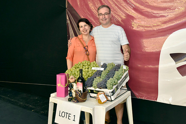 No último dia da 37ª Festa da Uva e 8ª Expo Vinhos de Jundiaí, o casal Emerson e Wanderlea Furlaneto quis levar uma lembrança para casa, mas em grande estilo: no leilão de frutas, realizado em todos os finais de semana da festa em prol do Fundo Social de Solidariedade, eles arremataram um kit de uvas, vinho e geleia por R$ 260. “Minha intenção foi ajudar o FUNSS”, disse Emerson, morador de Jundiaí. “A festa está aprovadíssima, a cada ano está melhor”, afirmou.
